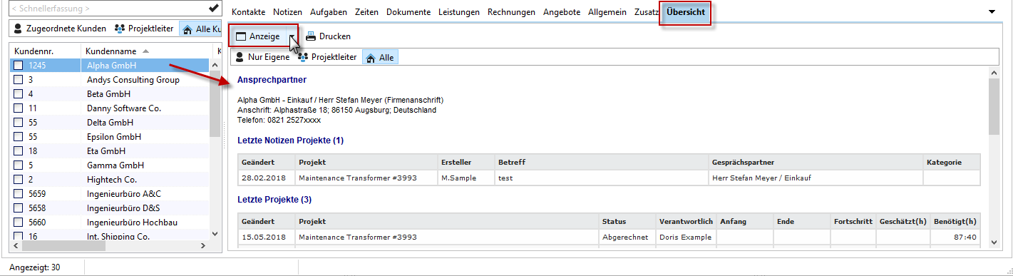 So erhalten Sie eine schöne Übersichtsseite zu allen Aktionen bezüglich Ihres Kunden.