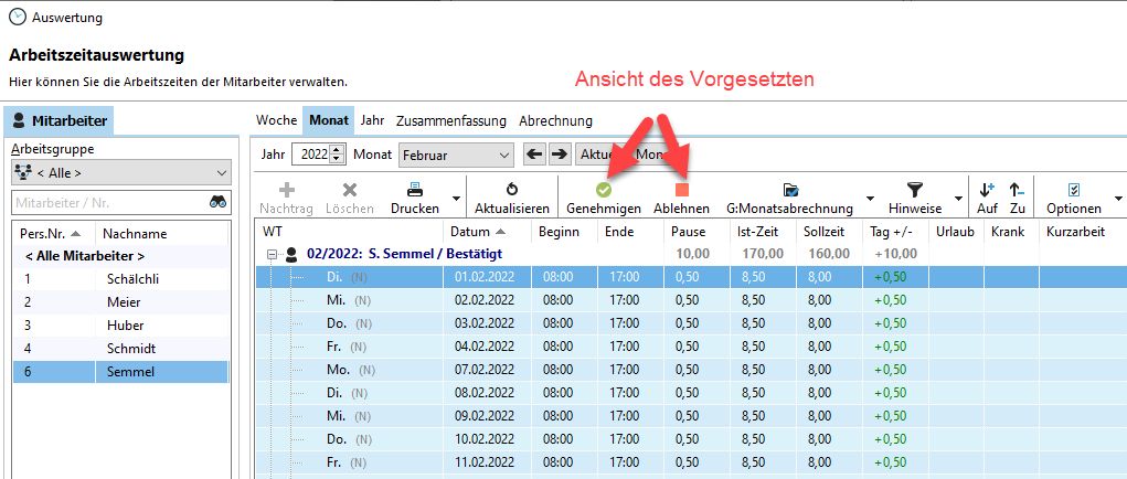 - Vorgesetzter muss Mitarbeiterzeiten genehmigen