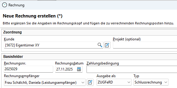 Wählen Sie zunächst in nachfolgender Tabelle, ob Sie eine Rechnung bearbeiten oder eine neue Rechnung erstellen möchten. Klicken Sie dazu auf den entsprechenden Link.