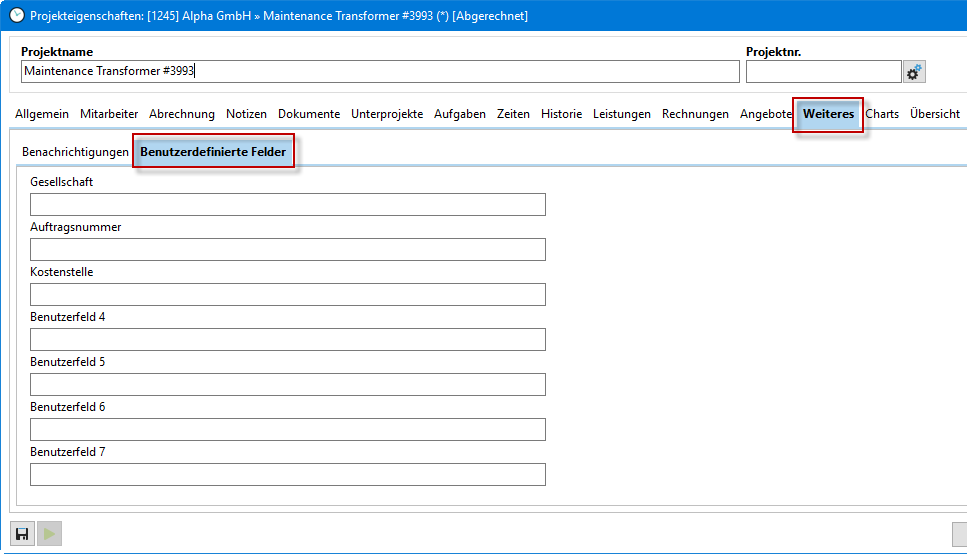 Im Reiter "Weiteres" stehen Ihnen wiederum zwei "Reiter" zur Auswahl. Im Bereich "Benutzerdefinierte Felder" können Sie selbst Felder anlegen und umbenennen. Sollten Sie über die XTAPI auf die Datenbank zugreifen, stehen Ihnen diese Felder zur Auswertung zur Verfügung.
