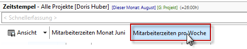 Die Ansicht wird unter dem Namen "Mitarbeiterzeiten pro Woche" gespeichert.