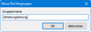 Im Dialog "Neue Rechtegruppe" geben Sie den Gruppennamen an, im Beispiel legen wir die Rechtegruppe "Abteilungsleitung" an.