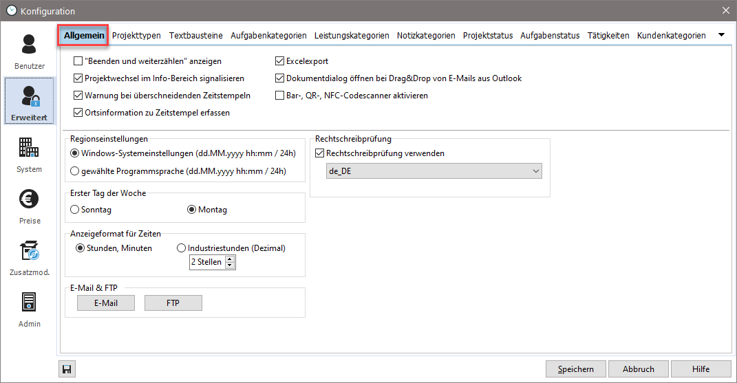 Sollten Sie Zeiten erfassen und möchten dabei überschneidende Zeitstempel vermeiden, aktivieren Sie diese Option. Bei der Erfassung von überschneidenden Zeitstempeln wird dann eine Warnung angezeigt.