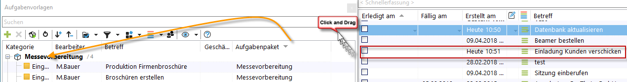 Jetzt können Sie auch bestehende Aufgaben in Ihrer Aufgabenliste per drag&drop auf das Aufgabenpaket hinzufügen.