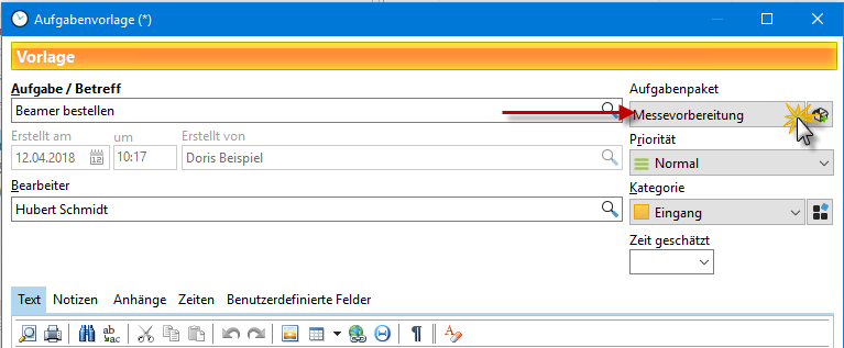 Erstellen Sie im Dialog Aufgabenvorlagen ein neues Aufgabenpaket: